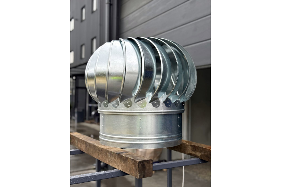 Ротаційний дефлектор РД працює за рахунок енергії вітру: обертання турбіни створює розрідження у вентиляційному каналі, посилюючи природну тягу. Ефективно відводить вологе та гаряче повітря, запобігає утворенню конденсату й зворотній тязі.