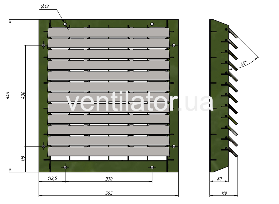 УЗС-1: 1 – Рама; 2 – Жалюзи